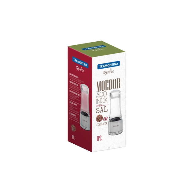Нержавіюча сталь та акрилова ємність для солі та перцю Tramontina з керамічним млином з лінійки Realce полегшать ваш розпорядок дня на кухні та гарантують красу вашому столу.