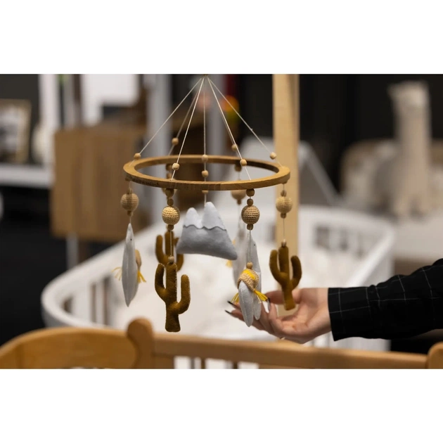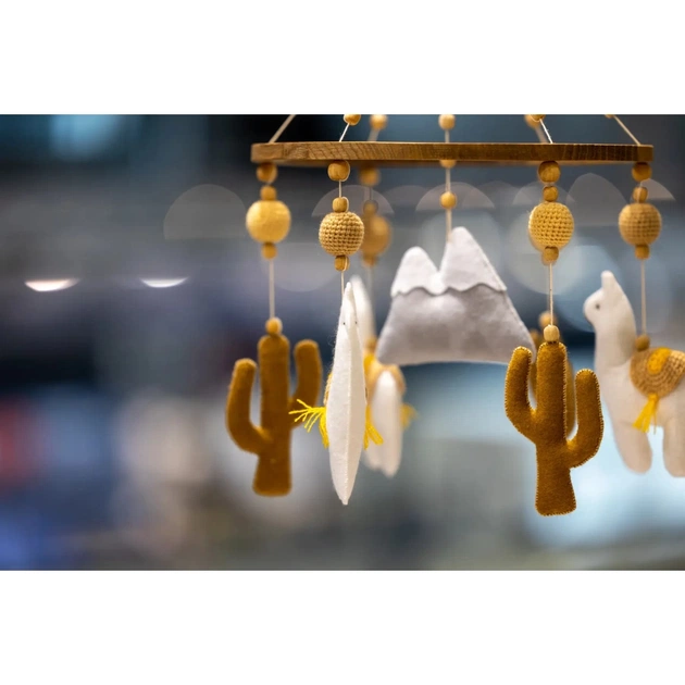 - Милий дизайн: Мобіль представлений у вигляді симпатичних ламочок, що м'яко обертаються, створюючи атмосферу тепла та комфорту. Кожна ламочка виконана з великою увагою до деталей, що робить мобіль не лише функціональним, але й привабливим для ока.