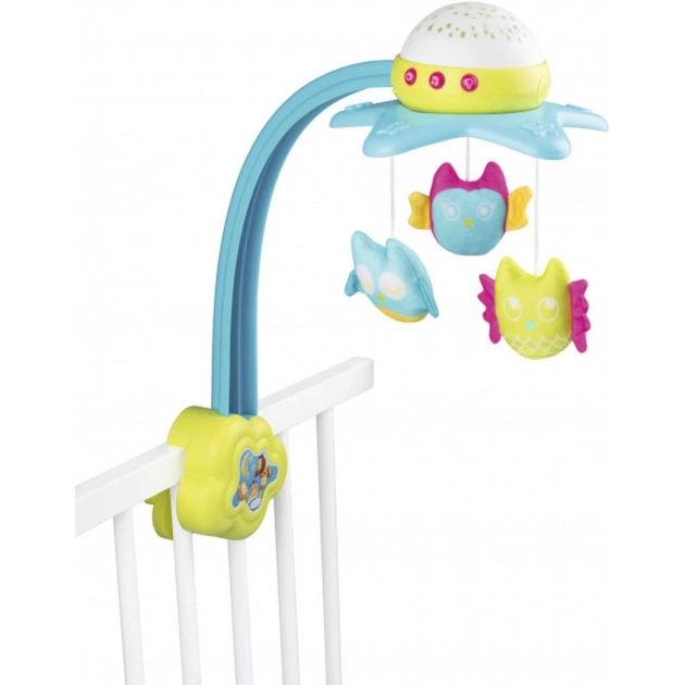 Три милі підвіски совушки на мобілі кажуть добраніч і мелодійно під звуки ніжної музики супроводжують вашого малюка в країну сновидінь. Ви можете вибрати 4 різні мелодії: 3 магічні колискові і 1 звук із заспокійливими природними звуками.