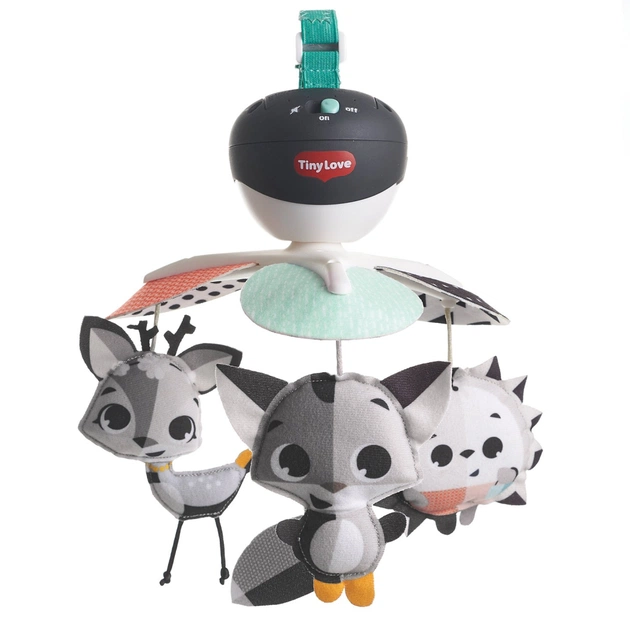 Мобайл 3 в 1 Нічна поляна від Tiny Love з чорно-білої колекції - новинка для розвитку вашої дитини. Іграшку можна закріпити на ліжечку за допомогою прогумованого кріплення, а можна закріпити на люльку, коляску або дугу за допомогою кріплення типу «краб». Всі кріплення надійні і міцні, легко розібрати мобайл і можна брати з собою в подорож.