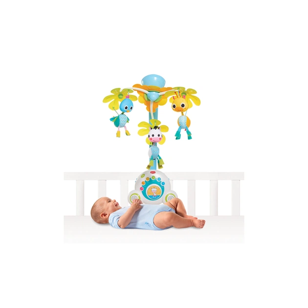 Особливості мобіля Tiny Love Сафарі 5 в 1: 40 хвилин музики без повторень; 6 різних стилів і 15 мелодійних тем; 3 милих фігурки; заспокійливий нічник; 2 високоякісних динаміки; кнопка для вибору мелодій (легке управління для малюка); вік: від 0 місяців.
