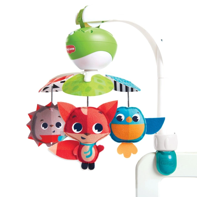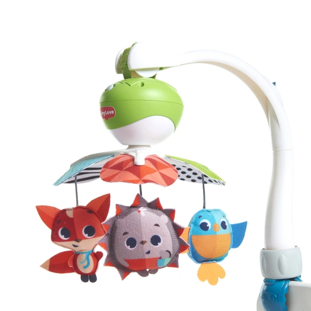 Мультифункціональний музичний мобайл 3-в-1 Весела Галявина стане улюбленою іграшкою для малюка не тільки вдома під час сну, а й на прогулянці, на вулиці або в дорозі під час подорожі. Чудова розвивальна іграшка з перших місяців життя дитини: 2 типи обертання, оригінальний дизайн, м'які іграшки-підвіски, які можна зняти та гратися ними, коли малюк підросте.