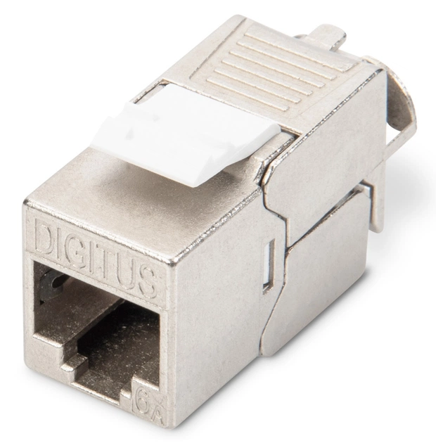 CAT 6A Keystone Jack, екрановане, підключення без інструментів. Модуль Keystone Cat 6A з екрануванням на 360° підтримує швидкість передачі до 10 Гбіт/с та 500 МГц при підключенні до мережних встановлювальних кабелів Cat 6A або вище. У поєднанні з модульною комутаційною панеллю та модульними мережевими розподільними коробками модулі Cat 6A Keystone ідеально підходять для сучасних структурованих кабелів будівель. Монтажне з'єднання модуля Keystone категорії 6A / класу EA уможливлює монтаж без інструментів для мережевих кабелів з поперечним перерізом між AWG 26/7 та 22/1. Роз'єм Keystone з роз'ємом RJ45 сертифікований GHMT – конструкція сумісна зі стандартними мережевими роз'ємами – шини LSA мають кольорове маркування відповідно до EIA/TIA 568 A&B.