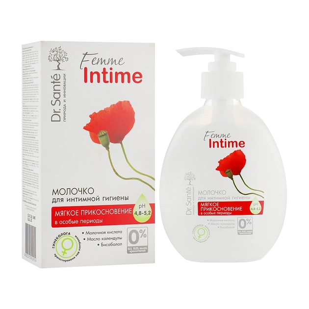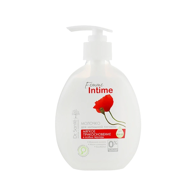 Щиро піклуючись про здоров’я і красу своїх клієнток, технологи провідної вітчизняної косметичної лабораторії Dr.Sante створили серію інноваційних продуктів для інтимної гігієни Femme Intime. До цієї серії входить кілька чудових засобів, з яких кожна леді, незалежно від свого віку та потреб, зможе вибрати той продукт, який найбільш точно відповідає її очікуванням і запитам. Утім, незважаючи на обраний засіб, ви можете бути впевнені в його гіпоалергенності - усі продукти від Femme Intime не містять барвників, мильної основи, спирту, SLES і SLS.