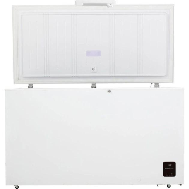 Морозильна скриня Gorenje FH43EAW має об'єм 440 літрів і призначена для зберігання великої кількості продуктів. Вона оснащена функцією FreezeProtect, яка забезпечує оптимальну роботу навіть при низьких температурах до -15°C, що робить її ідеальним вибором для розміщення в гаражах або підвалах. Функція FastFreeze дозволяє швидко заморожувати продукти при температурі -24°C, зберігаючи їх поживні властивості. Після 48 годин температура автоматично повертається до початкових налаштувань.