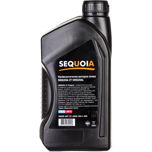 Sequoia 2T-Original — напівсинтетична олива в поєднанні з високоякісними присадками захищає двигун, запобігає спрацьовуванню деталей, має антикорозійні та мийні властивості. Призначено для використання під час роботи сучасних високопродуктивних 2-тактних двигунів садової техніки. Змішується з бензином відповідно до інструкцій виробника техніки.
