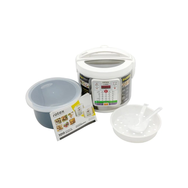 З Rotex RMC532-W ваш побут стане простіше, а на вашому столі з'явиться більше нових смачних і корисних страв. Чаша загальним об"ємом п'ять літрів має антипригарне мармурово- біле керамічне покриття. Технологія 3D нагріву створює усередині чаші рівномірний розподіл тепла, що ідеально для виконання теплової обробки продуктів і приготування різних страв. За допомогою електронного дисплея і кнопок ви з легкістю зможете вибрати необхідну програму. Вбудована функція підтримки температури дозволяє вже приготовленій їжі зберігати тепло певний час. Є також і таймер відстрочки старту, який дозволяє мультиварці автоматично почати приготування обраної вами страви без вашої присутності.