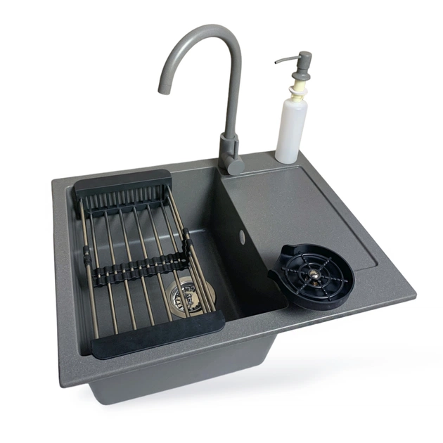 Мийка кухонна Adamant Minimal сірий + змішувач + дозатор + ополіскувач склянок + коланд (4824296106404)