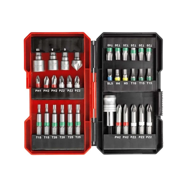 Набір біт KWB 108801 - універсальний набір біт та аксесуарів з 34 предметів для дрилів, акумуляторних викруток та шуруповертів Einhell.