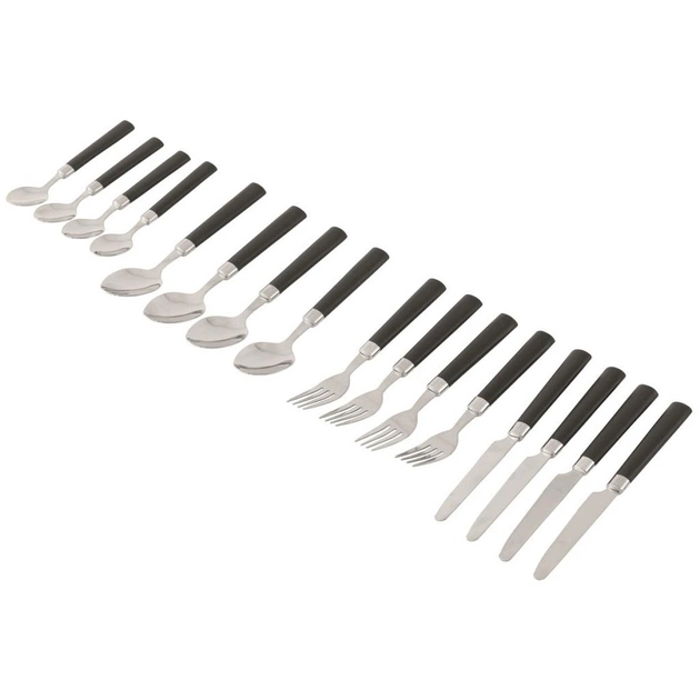 З набором для пікніка Outwell Pouch Cutlery Set Ви отримаєте практичне рішення для приємного відпочинку на природі з сім'єю і друзями. Набір столових приладів складається з чотирьох вилок, чотирьох ножів, чотирьох ложок і чотирьох чайних ложок, а також чохла, в якому їх зручно зберігати. Столові прибори виготовлені з нержавіючої сталі і пластика. Довжина вилки - 19,5 см, довжина ножа - 22 см, довжина ложки - 19,5 см, довжина чайної ложки - 15,5 см. Їх можна мити в посудомийній машині.