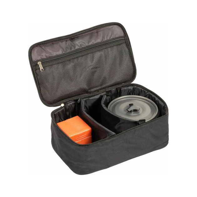 Туристичний комплект Field Kitchen від Skif Outdoor допоможе вам з комфортом приготувати повноцінний обід або вечерю на 2-3 персони. У великому відділенні сумки ви знайдете комплект із каструлі, сковорідки і чайника, а також газовий пальник. Набір посуду виконаний із алюмінію. Їжа в ньому готується швидко, а помити можна навіть в холодній воді. Всі три елемента приладдя можна скласти за принципом матрьошки в чохлі-сітці. Пальник призначений для використання з балоном різьбового стандарту. Внизу розташований п'єзопідпал, на випадок вітряної погоди. Подачу газу можна налаштовувати за допомогою регулятора на гнучкому шлангу довжиною 30 см. Знаходиться пальник в пластиковому захисному контейнері. Розкладні ніжки дозволяють встановити пальник навіть на нерівний поверхні. Завдяки знімним перегородкам усередині сумки, ви можете розподілити внутрішній простір так, як потрібно саме вам.
