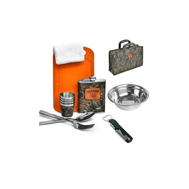Набір для пікніка Stenson для мисливця/рибалки "Ukraine" 13пр/набір у камуфляжному кейсі (R31003)