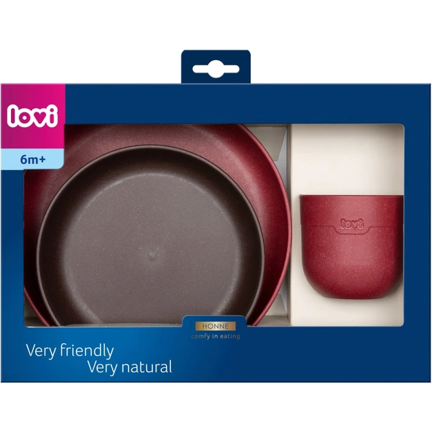 LOVI Набір посуду з кружкою. Виготовлений з натуральної сировини - 20% переробленого деревного волокна. Легкий та зручний - підходить для будь-якого віку дитини. Безпечний для малюка - без вмісту BPA. Набір посуду - всі елементи необхідні для розширення раціону. На вибір мисочка, тарілочка та кружечка - для різних страв. Чудовий варіант подарунку.