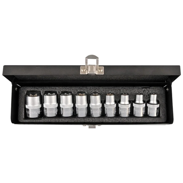 Набір торцевих головок 1/2 "TORX 9 предметів призначені для відкручування і закручування гвинтів, болтів, які мають зовнішній шестипроменевої робочий профіль.