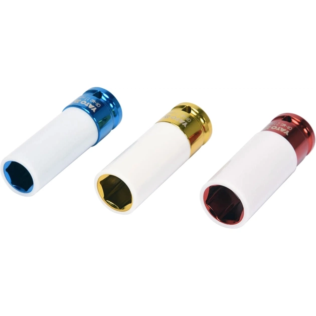 Головки для алюмінієвих дисків YATO застосовують під час заміни шин, а також під час монтажних робіт. Виготовлено з хромо-молібденової сталі.