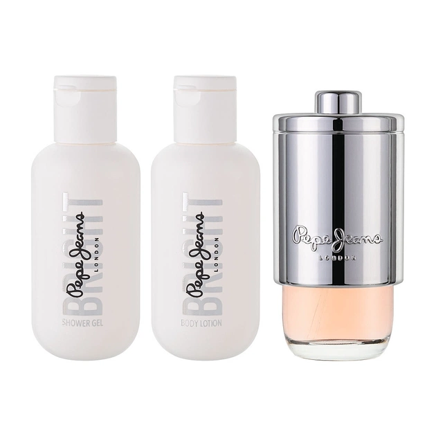 Склад набору: Pepe Jeans Bright - Парфумована вода, 30 мл + Pepe Jeans Bright - Гель для душу, 60 мл + Pepe Jeans Bright - Лосьон для тіла, 60 мл.