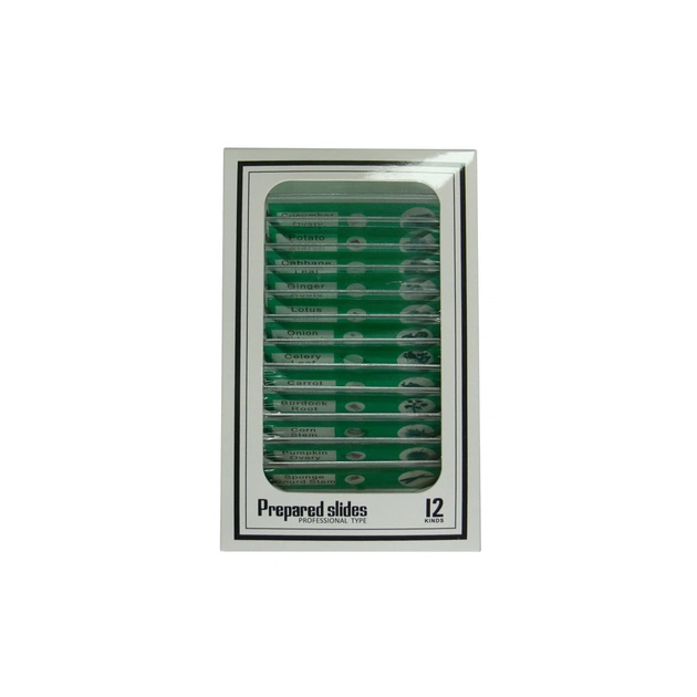 У наборі слайдів для мікроскопа Тканини рослинних організмів ви знайдете підготовлені до вивчення зрізи рослин — як знайомих нам із дитинства, так і екзотичних. Зразки розміщені на небитких пластинах із прозорого пластику; кожен слайд має підпис (англ.) і малюнок-піктограму із зображенням предмета дослідження.