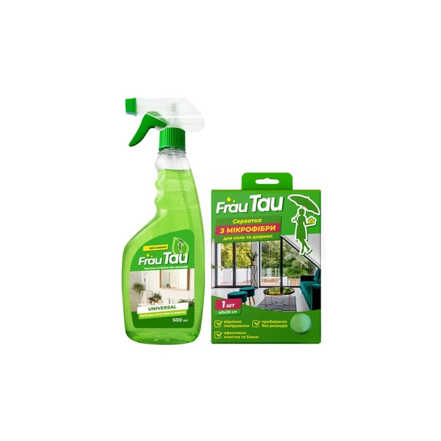 Набір побутової хімії Frau Tau Для очищення скла та глянцевих поверхонь Спрей 500 мл + Серветка з мікрофібри (4802370056146) - picture 1