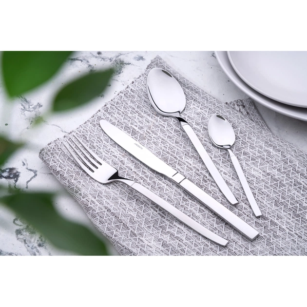 Набір столового приладдя з 24 предметів. Включає в себе: ложки, виделки і ножі. Приладдя виконано з нержавіючої сталі з дзеркальною поліровкою.