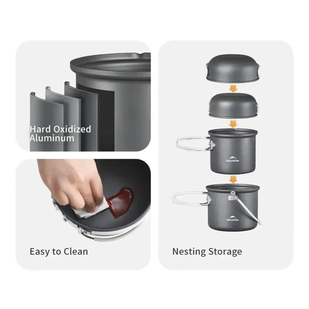 Набір туристичного посуду Naturehike NH18T018-G, алюміній, 2 каструлі, 2 кришки (6927595785515)