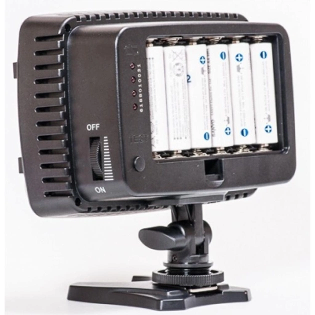 Потужність: 160 led. Колірна температура: 3200-5500K. Харчування: 6 пальчикових акумуляторів AA, для Sony і Panasonic - літієві акумулятори. Сумісність: для всіх фотокамер з універсальним кріпленням спалаху (крім Sony Minolta). Комплект поставки: накамерне світло. 3 світлофільтру: 1й - білий, для пом'якшення світла, 2й - помаранчевий, для зниження температури кольору, 3-й рожевий. Фірмова упаковка.