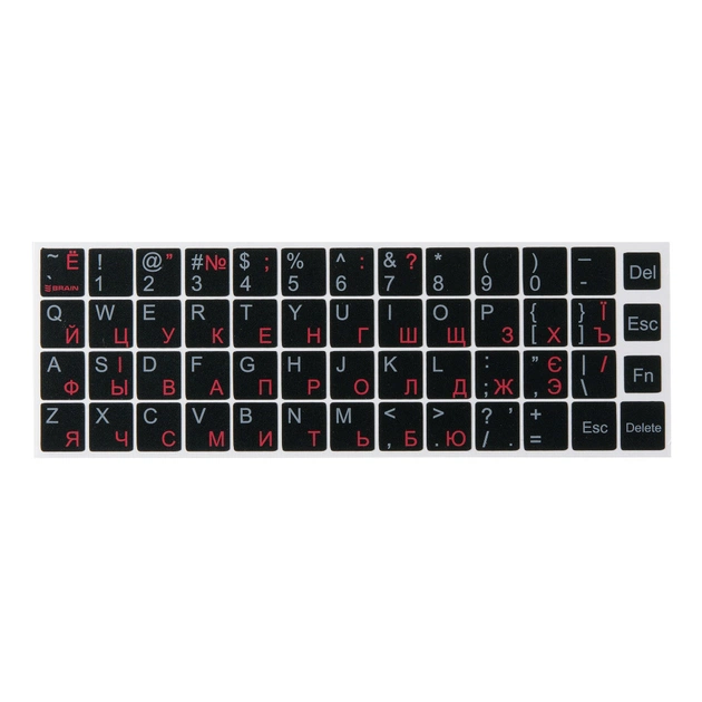 AIN black добре кріпляться до поверхні клавіатури. При необхідності, наклейки на клавіатуру легко видаляються з поверхні і не залишають слідів. Не бояться вологого прибирання. Розкладка: російська/українська/англійська.