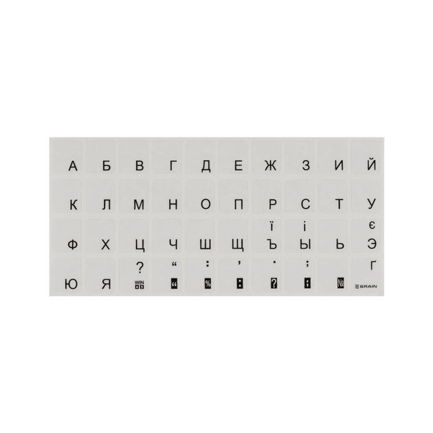 AIN black добре кріпляться до поверхні клавіатури. При необхідності, наклейки на клавіатуру легко видаляються з поверхні і не залишають слідів. Не бояться вологого прибирання. Розкладка російсько-українська.
