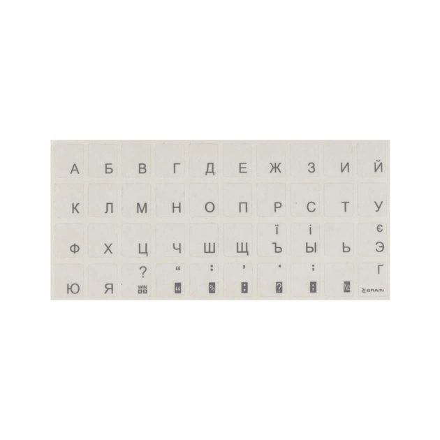 AIN silver добре кріпляться до поверхні клавіатури. При необхідності, наклейки на клавіатуру легко видаляються з поверхні і не залишають слідів. Не бояться вологого прибирання. Розкладка російсько-українська.