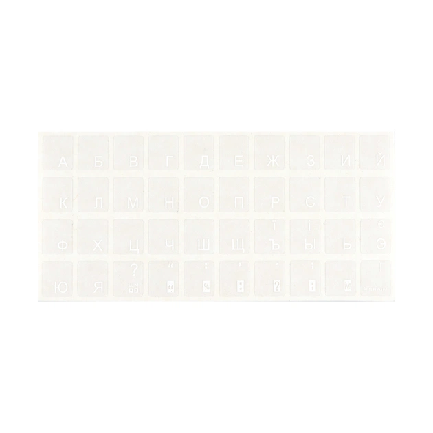 AIN white виготовлені з високоякісного матеріалу і покриті спеціальним тонким захисним шаром, який запобігає стиранню букв і подовжує термін служби наклейки. Наклейки на клавіатуру