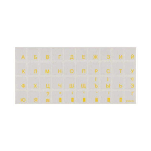 AIN yellow виготовлені з високоякісного матеріалу і покриті спеціальним тонким захисним шаром, який запобігає стиранню букв і подовжує термін служби наклейки. Наклейки на клавіатуру