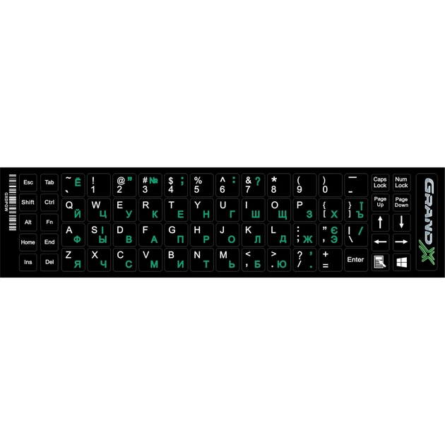 Наклейки на клавіатуру Grand-X protected 68 keys Cyrillic green, Latin white GXDPGW:
