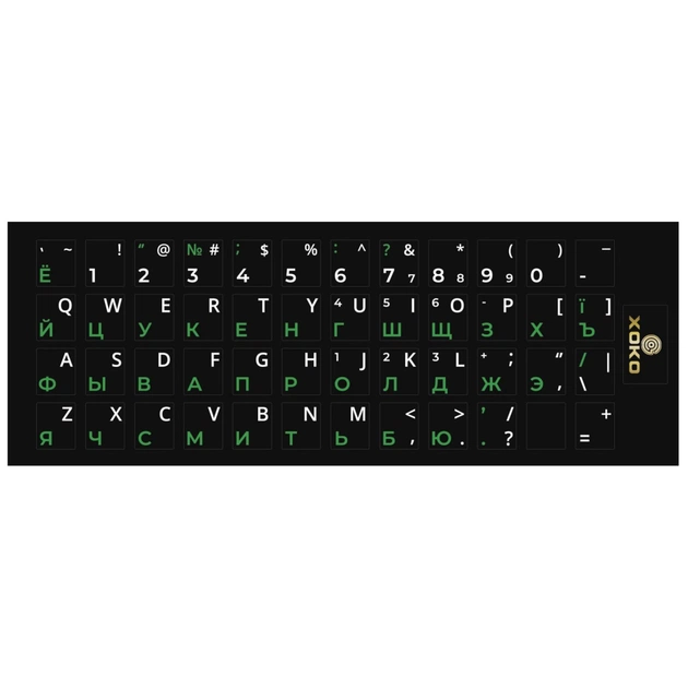 Наклейка на клавіатуру XoKo 48 keys UA/rus green, Latin white (XK-KB-STCK-SM)