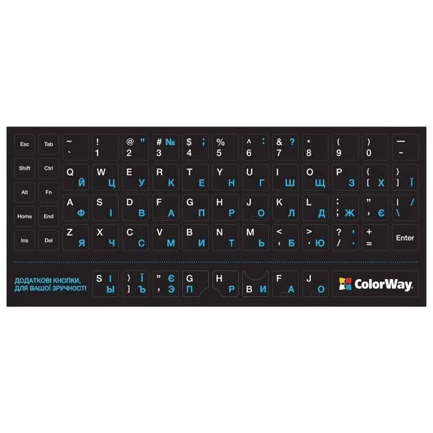 Непрозорі наклейки ColorWay — це практичне рішення для тих, хто працює з кількома мовами або хоче швидко освіжити вигляд клавіш.