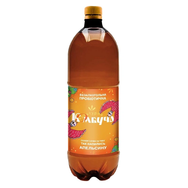 - вода підготовлена, натуральний інгредієнт апельсин, прості вуглеводи (цукор у процесі ферментації розпадається), чай чорний, діоксид вуглецю, продукти життєдіяльності асоціації культур мікроорганізмів Medusomyces gisevii DP21. Допускається завись та осад живої культури корисних мікроорганізмів. зберігати: за температури 5-25°С не більше 180 діб. Енергетична цінність (калорійність) на 100 мл – 96 кДж/23 ккал. Поживна цінність напою на 100 мл: жири 0 г, вуглеводи 6,0 г, білки 0 г, сіль 0 г, смак к