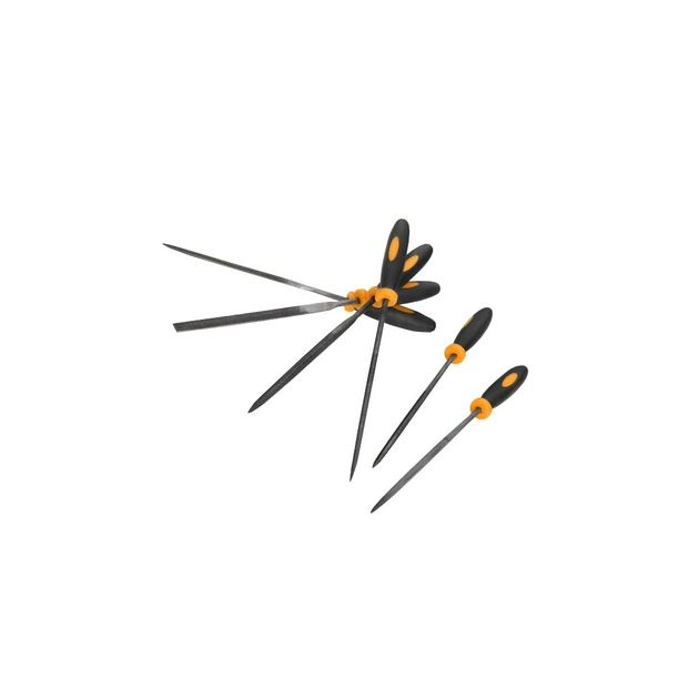 В комплект входять 6 надфілів – мініатюрних напилків: з плоским, делікатним плоским, прямокутним, квадратним, круглим, полукруглим за формою перерізом. Ручний абразивний інструмент підходить для обробки металу, дерева, пластмаси та інших твердих матеріалів.