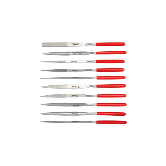 Набір надфілів алмазних Yato призначений для тонких і ювелірних робіт. Завдяки алмазному покриттю скоблить поверхню виробу, знімаючи його тонкий верхній шар. Мініатюрна форма надфіля дає змогу працювати зі важкодоступними місцями, обробляти пази та надавати кутам поверхні виробу потрібну форму та вигляд.