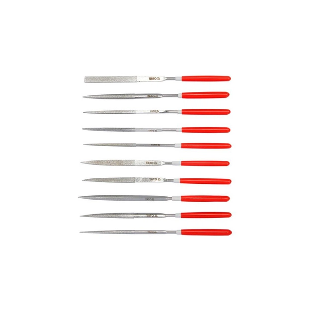 Набір надфілів алмазних Yato призначений для тонких і ювелірних робіт. Завдяки алмазному покриттю скоблить поверхню виробу, знімаючи його тонкий верхній шар. Мініатюрна форма надфіля дає змогу працювати зі важкодоступними місцями, обробляти пази та надавати кутам поверхні виробу потрібну форму та вигляд.