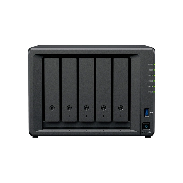 DS1525+ оснащений п’ятьма відсіками для жорстких дисків або SSD, що дає змогу створити гнучку систему зберігання з підтримкою різних конфігурацій RAID. Це ідеальне рішення для малого бізнесу або домашніх користувачів, які потребують надійного зберігання великих обсягів даних.