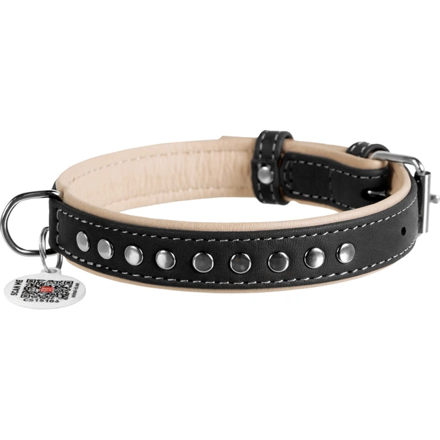 Нашийник для тварин WAUDOG Soft з QR паспортом, металеві прикраси L Ш 35 мм Д 57-71 см (7225)