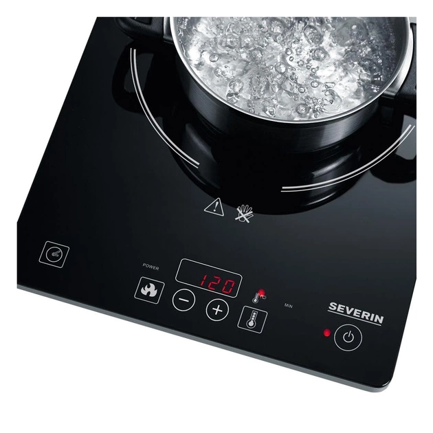 SEVERIN KP 1071 оснащена однією конфоркою потужністю 2000 Вт і управляється сенсорним датчиком.