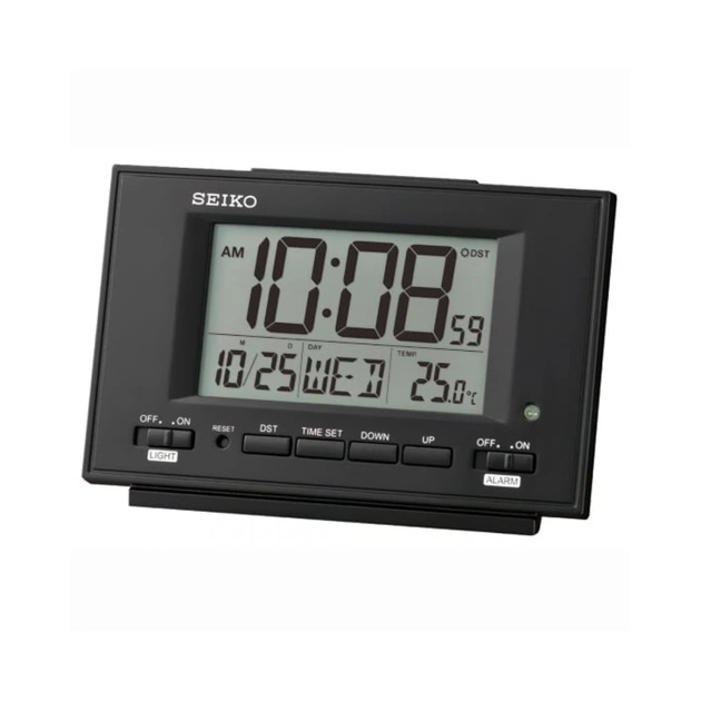 Функції: години, хвилини, секунди, автоматичний календар, включаючи зимовий/літній час, будильник з автоматичною зупинкою та повтором, термометр, підсвічування, датчик світла включає підсвічування дисплея, коли стає темно
