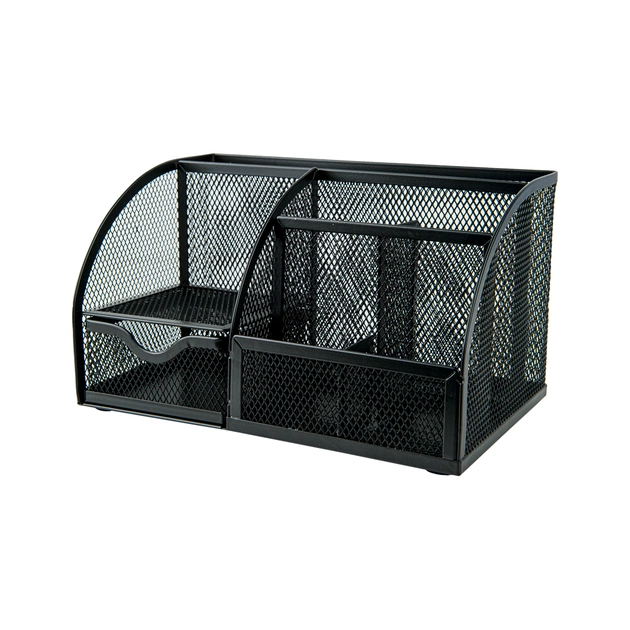 Підставка-органайзер має 7 відділень для різних дрібних предметів: паперів, блоку для нотаток, скріпок, кнопок, гумок, точилок, стікерів, канцелярського клею, ножиць, письмового приладдя тощо. Конструкція дуже стійка та міцна, адже підставка виготовлена з металу. А отже, вона – практична, зручна та витривала. Завдяки металевій сіточці, відділи прозорі, видно де що лежить. Ще одна з переваг органайзеру – можливість зібрати стильний настільний комплект з іншими металевими підставками Axent у цьому ж кольорі.