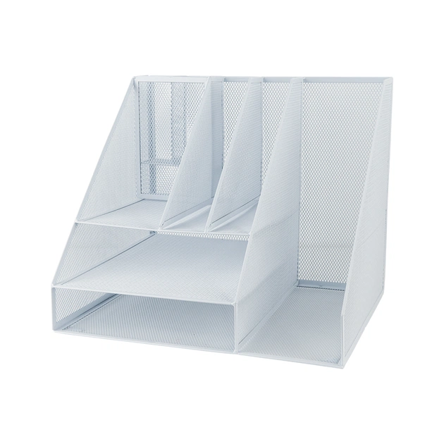 Підставка-органайзер має 7 відділень для різних дрібних предметів: паперів, блоку для нотаток, скріпок, кнопок, гумок, точилок, стікерів, канцелярського клею, ножиць, письмового приладдя тощо. Конструкція дуже стійка та міцна, адже підставка виготовлена з металу. А отже, вона – практична, зручна та витривала. Завдяки металевій сіточці, відділи прозорі, видно де що лежить. Ще одна з переваг органайзеру – можливість зібрати стильний настільний комплект з іншими металевими підставками Axent у цьому ж кольорі.
