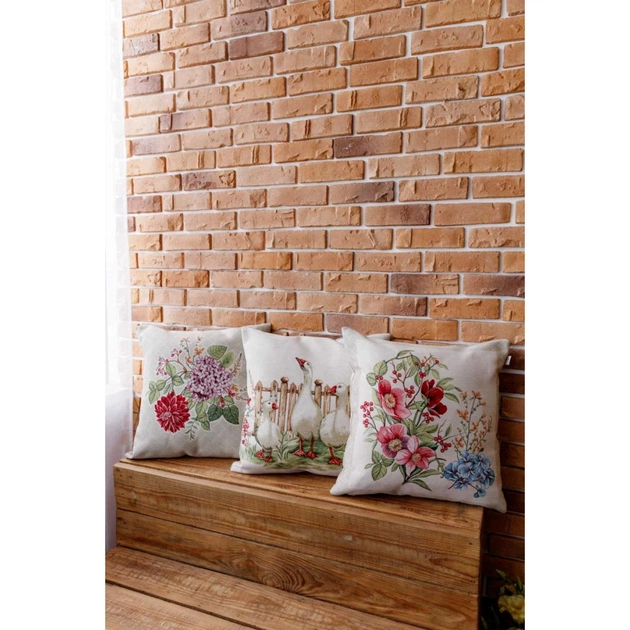 Наволочка на блискавці, виготовлена з високоякісної іспанської тканини. Гобеленова наволочка це чудовий додаток до скатертини, серветок, фартуха, прихваток та рукавичок з весняної колекції Гуси. Подушку до декоративної наволочки можно замовити окремо.
