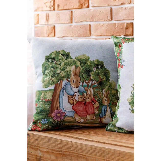 Наволочка Прованс гобеленова декоративна Зайчиха із зайчатами Галявина 45х45 см (034240)
