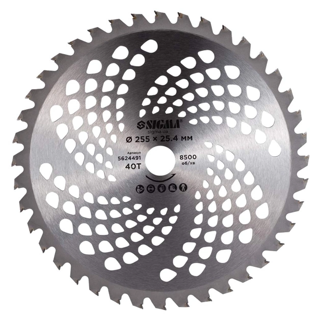 Ніж для тримера Sigma з твердосплавними напайками 255x25.4мм 40Т (5624491)