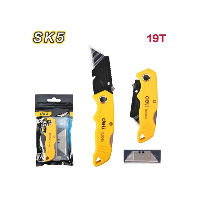 Ніж складний Deli EDL006K 19T. Міцний ніж для точного та плавного різу. Оснащений лезом SK2 розміром 61 х 19 мм — гострим, ефективним і створеним для максимальної точності. Цинковий корпус забезпечує надійне захоплення та довговічність, а автоматичне блокування гарантує безпечне використання.