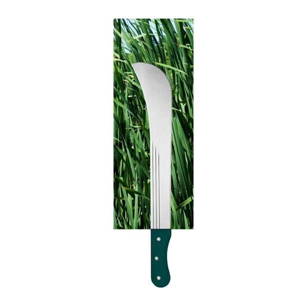 Мачете має міцну конструкцію, складається з ергономічної рукоятки і прямого леза з насічками.