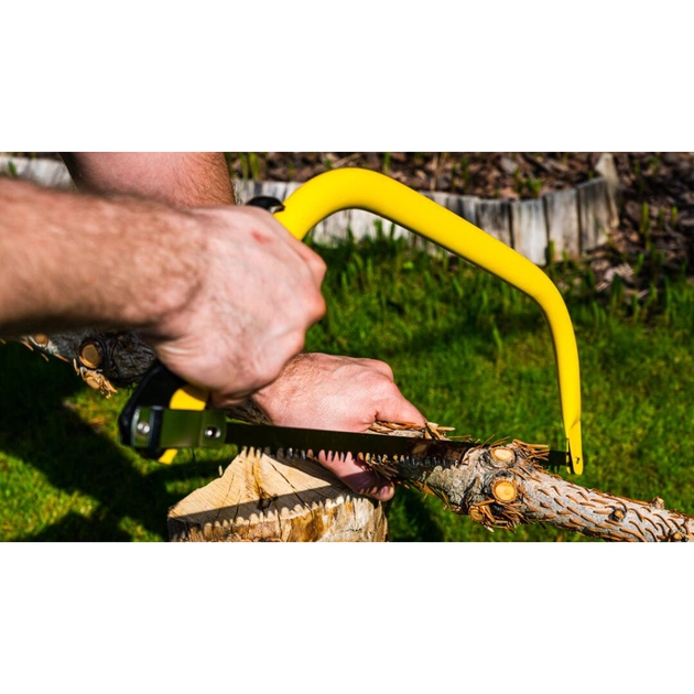 Ножівка городня - лучкова пила TOPEX (10A907) завдяки високому розташуванню штанги може розпилювати матеріали великого діаметру.