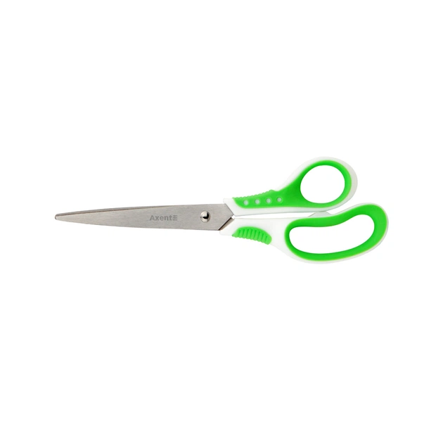 Офісні ножиці з пластиковими ручками - використовуються для різання паперу, картону, тканини та ін. Якісні матеріали та збірка, продумані деталі офісних ножиць Axent забезпечують комфортну, безпечну роботу і довговічність. Леза - з високоякісної сталі, міцні і стійкі до корозії, не потребують додаткового заточування. Кінчики лез закруглені для безпечної роботи. Леза щільно прилягають один до одного, забезпечують плавний і м'який хід. Папір розрізається легко і без зминання. Рукоятки з міцного пластику, стійкі до навантажень. Особливість ножиць серії Axent Shell - асиметричні кільця ергономічної форми з гумовими вставками, що запобігають ковзанню пальців, забезпечують зручність і комфорт у використанні, а також стильне і легке поєднання кольорів (білий з яскравим кольором).